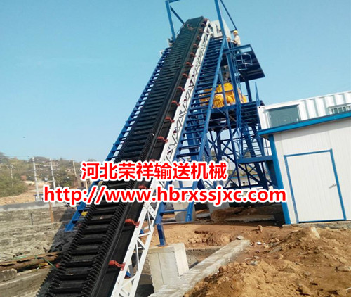 大倾角输送机也叫波浪式挡边输送机,是输送机的一种,尤其使用条件的限制,大倾角输送机在使用过程中有很多的优点。大倾角输送机有通用带式输送机结构简单、运行可靠、维修方便等优点,更可大倾角输送,结构紧凑、占地少,近年在提升高度,大输送量的方面发展很快,使其应用更为广泛。其主要由:卸料漏斗,头部护罩,传动滚筒,拍打清扫器,挡边带,压带轮,挡辊,中间机架,机架支腿,上托辊,下托辊,导料槽,改向滚筒,等等组成的,优点突出